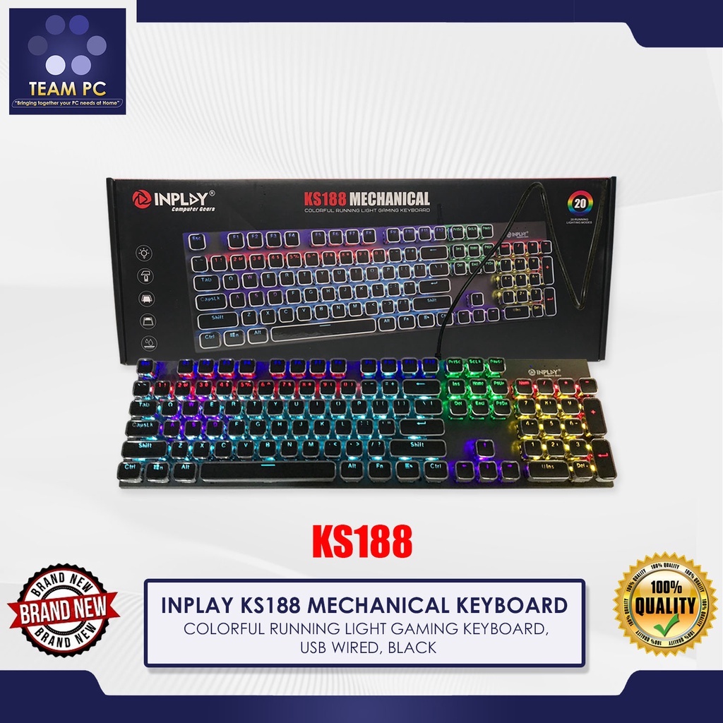 INPLAY KS188 MECHANICAL KEYBOARD, COLORFUL RUNNING LIGHT GAMING